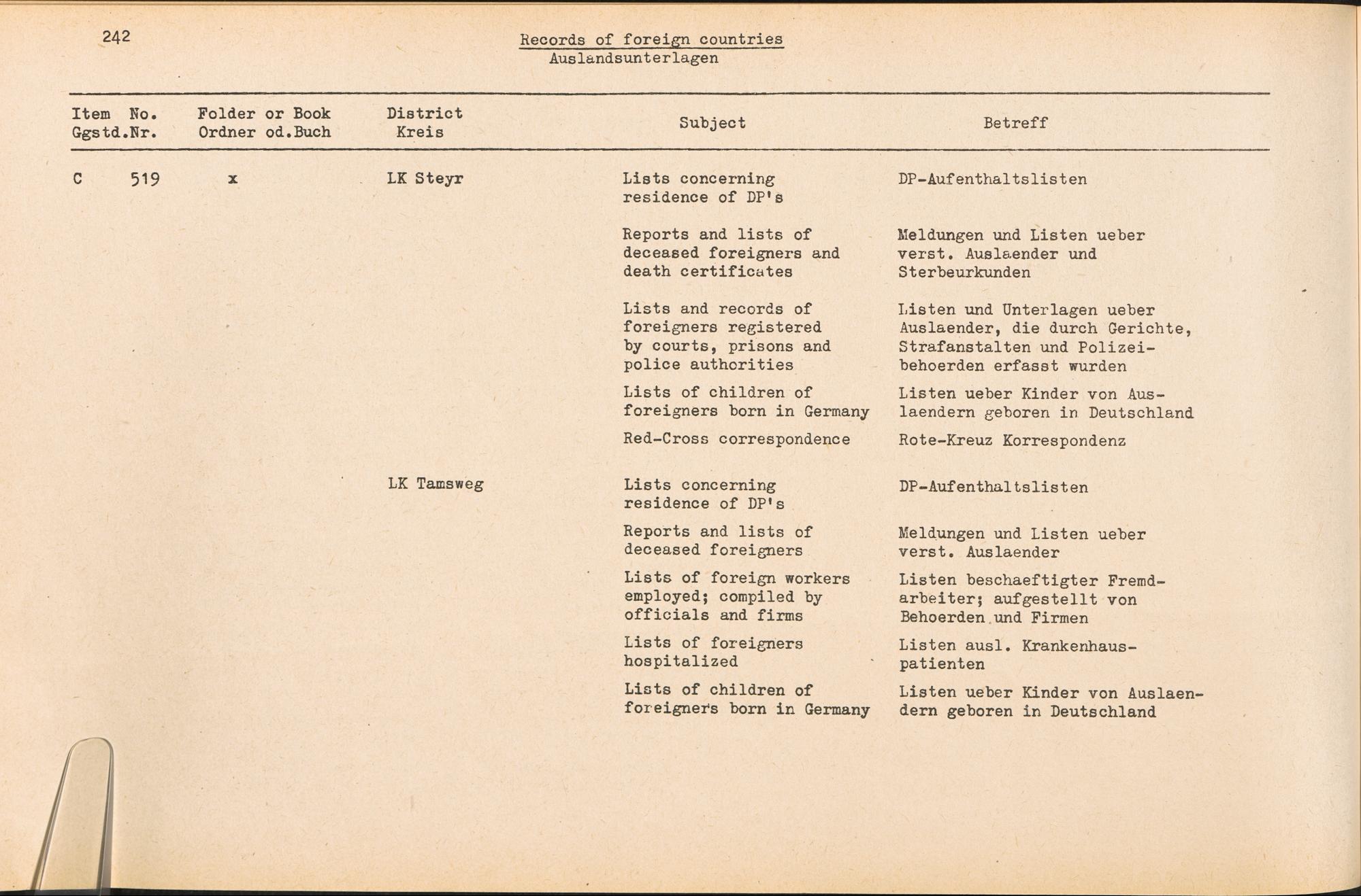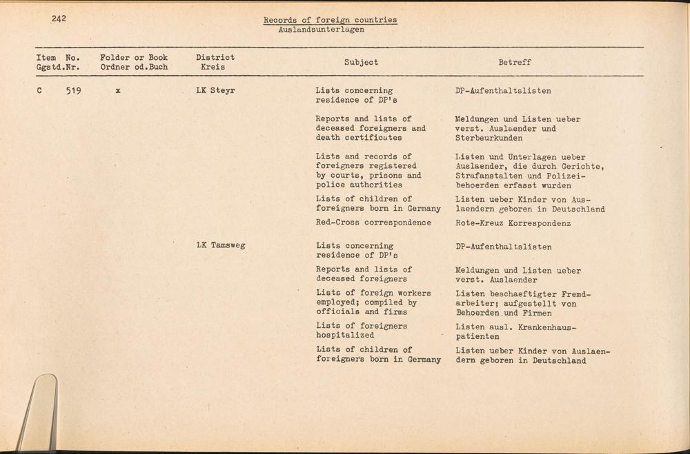 Band 4 (1954) Catalogue of Records held by the International Tracing Service of the Allied High Commission For Germany at Arolsen, Vol. IV