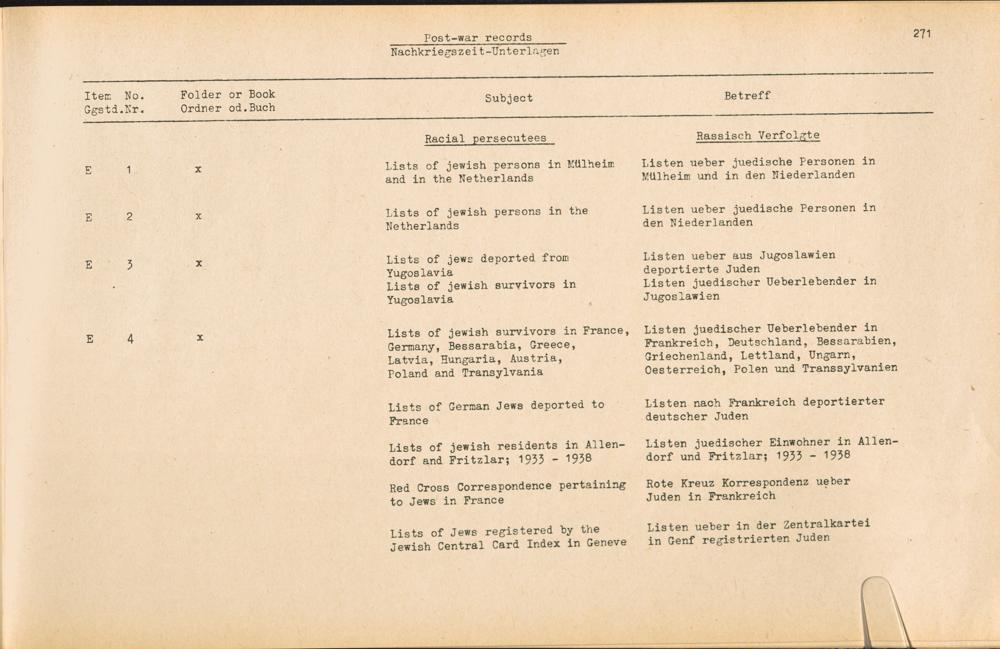 Band 4 (1954) Catalogue of Records held by the International Tracing Service of the Allied High Commission For Germany at Arolsen, Vol. IV