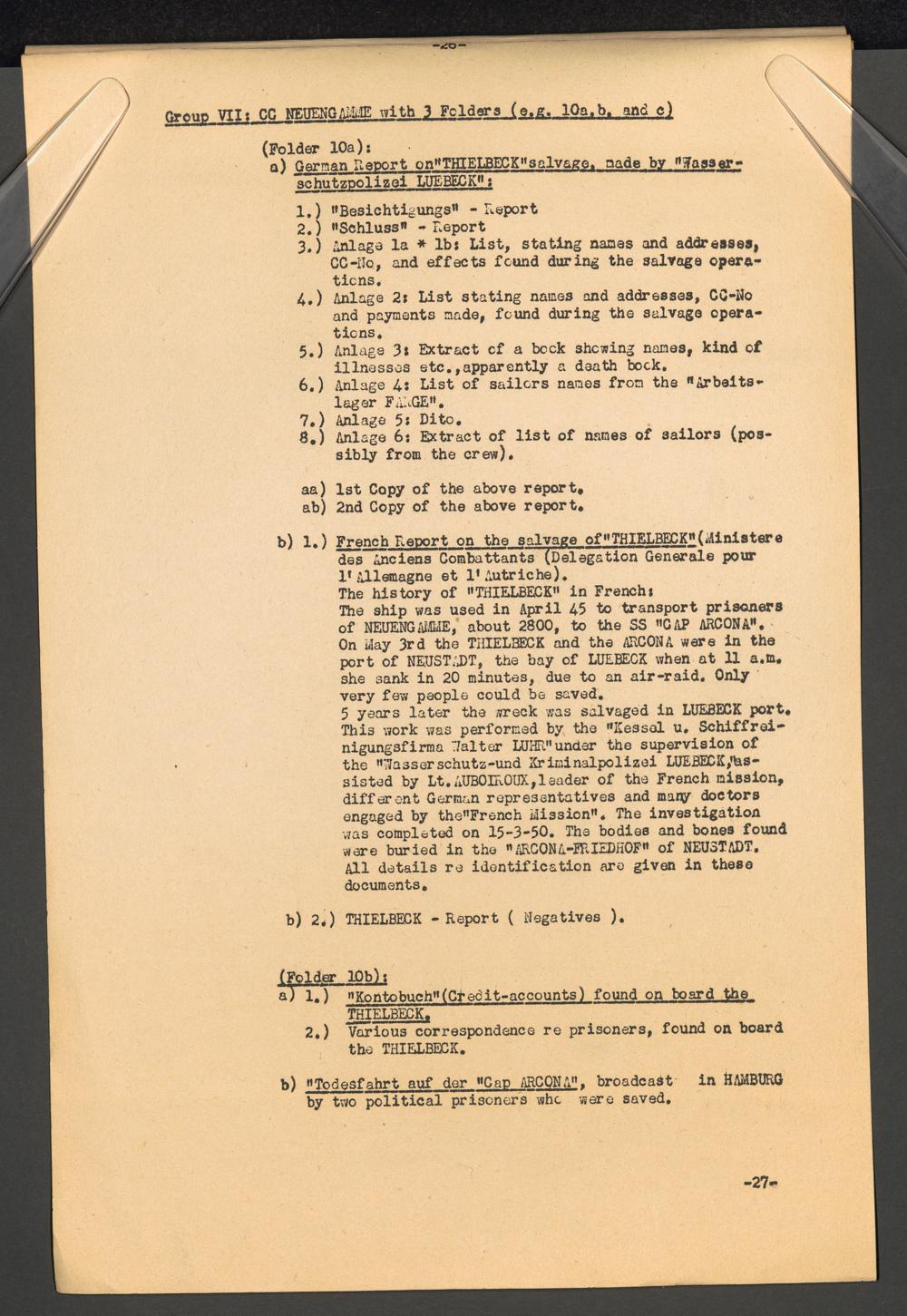 Catalogue of Miscellaneous Records of General or Historical Interest held by I.T.S / International Tracing Service