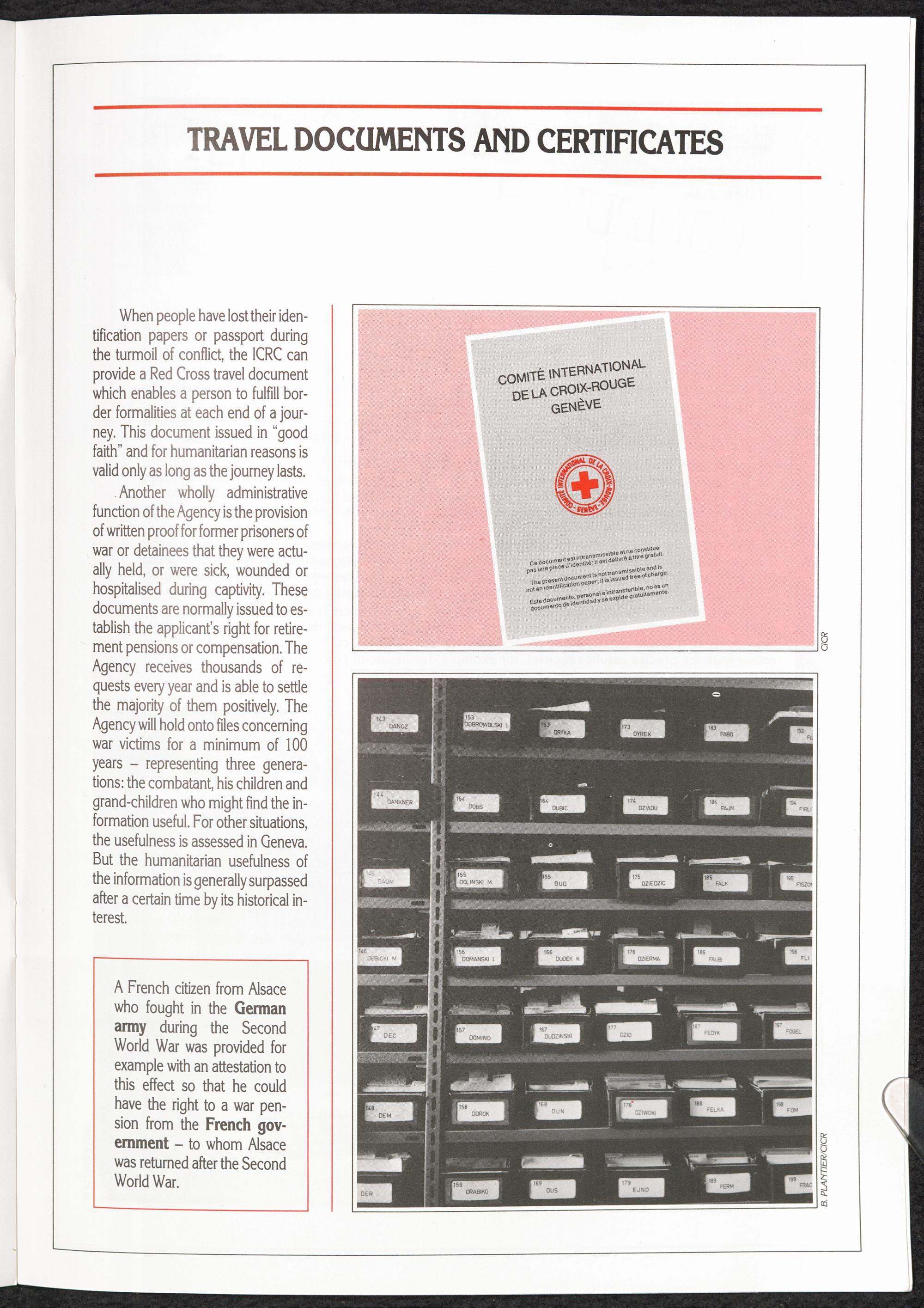 Central Tracing Agency of The ICRC Travel Documents and Certificates