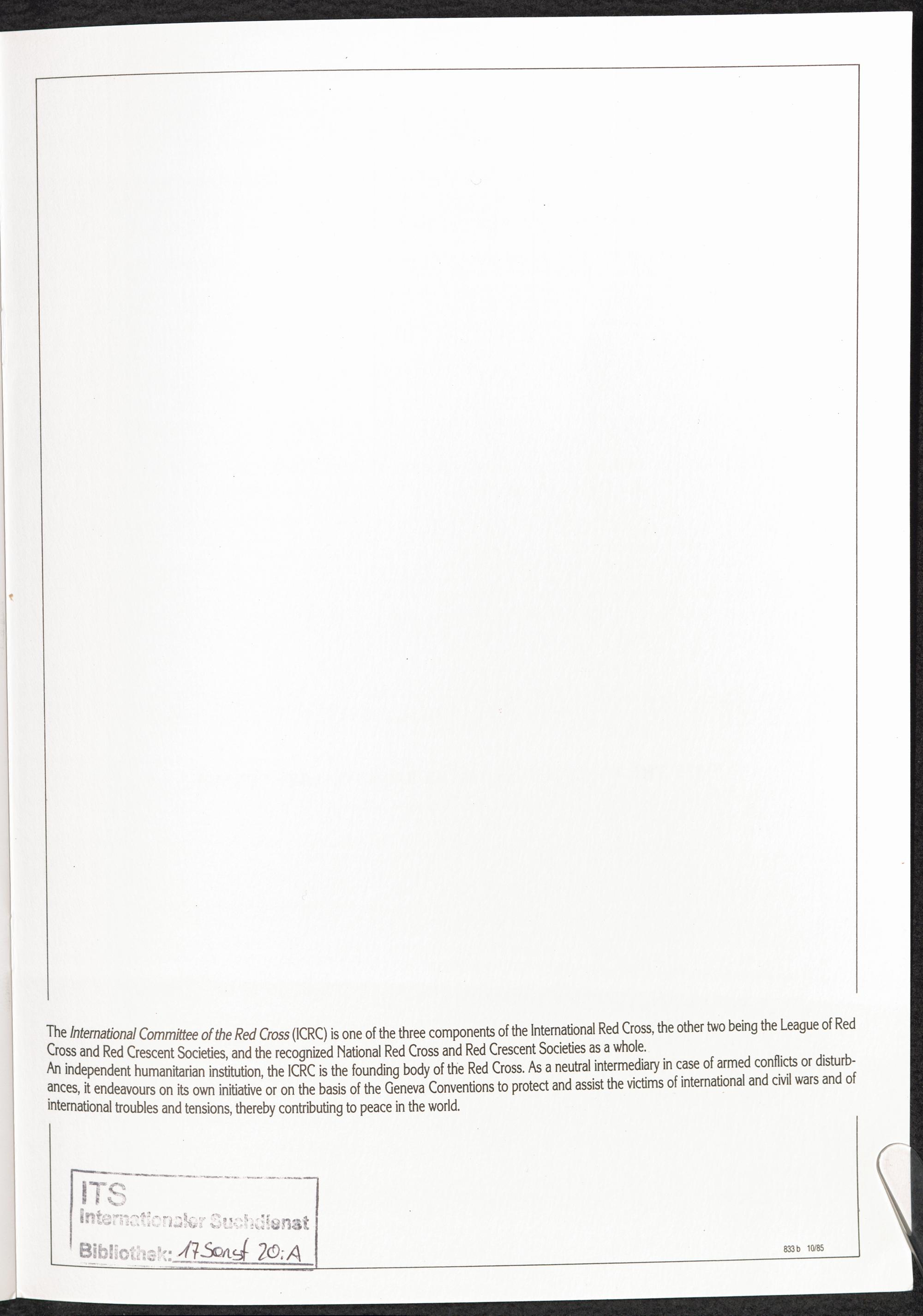 Central Tracing Agency of The ICRC Rückdeckel Innenseite