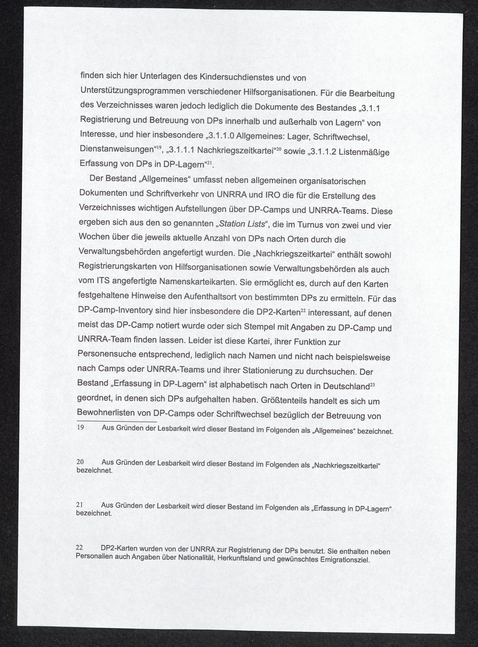 Das DP-Camp-Inventory des International Tracing Service (ITS), Bad Arolsen 2. Erstellung des DP-Camp-Inventory