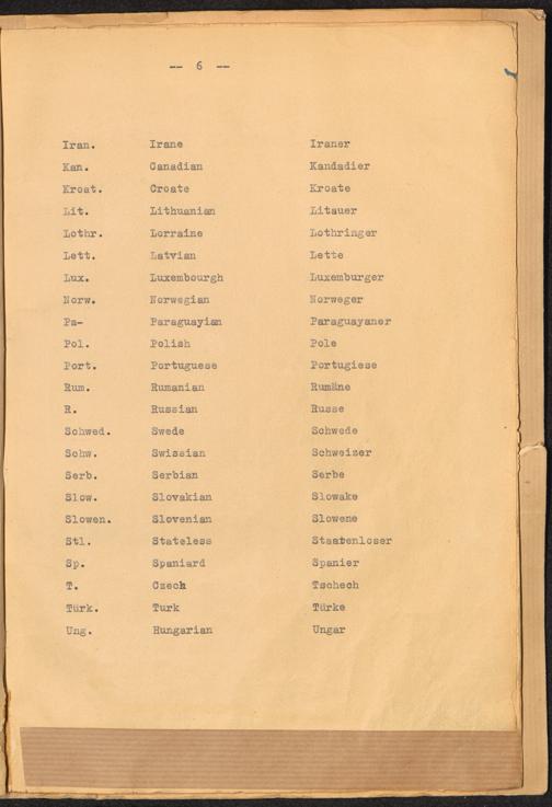 Haftarten und Abkürzungen des K.L. Dachau List of Nationalities - Nationalitäten-Aufstellung