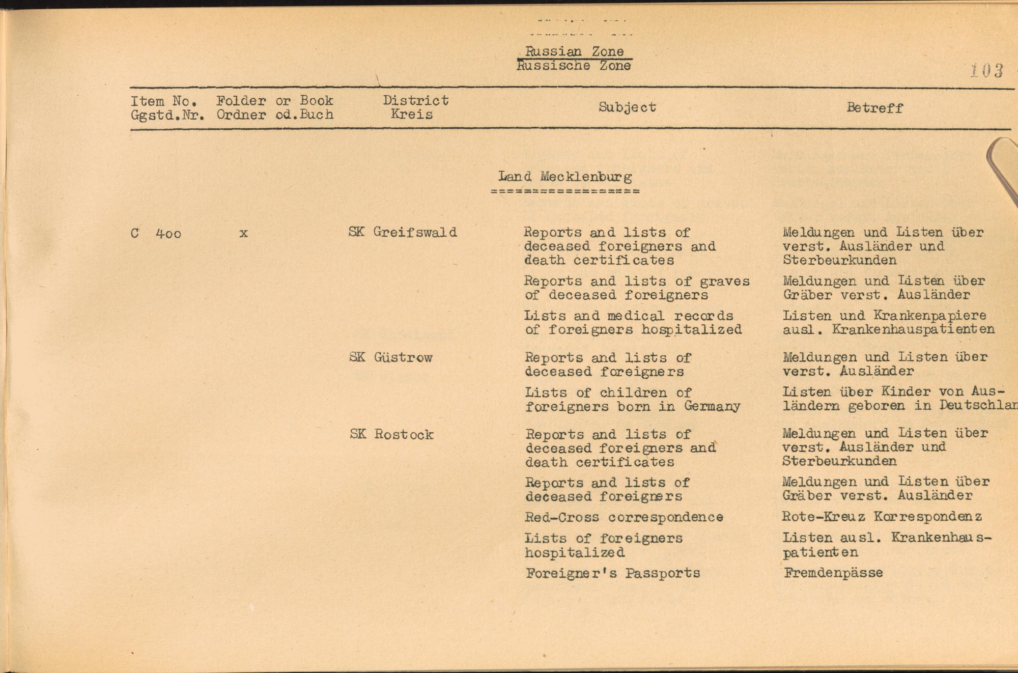 Vol. IV (1954) Catalogue of Records held by the International Tracing Service of the Allied High Commission For Germany at Arolsen