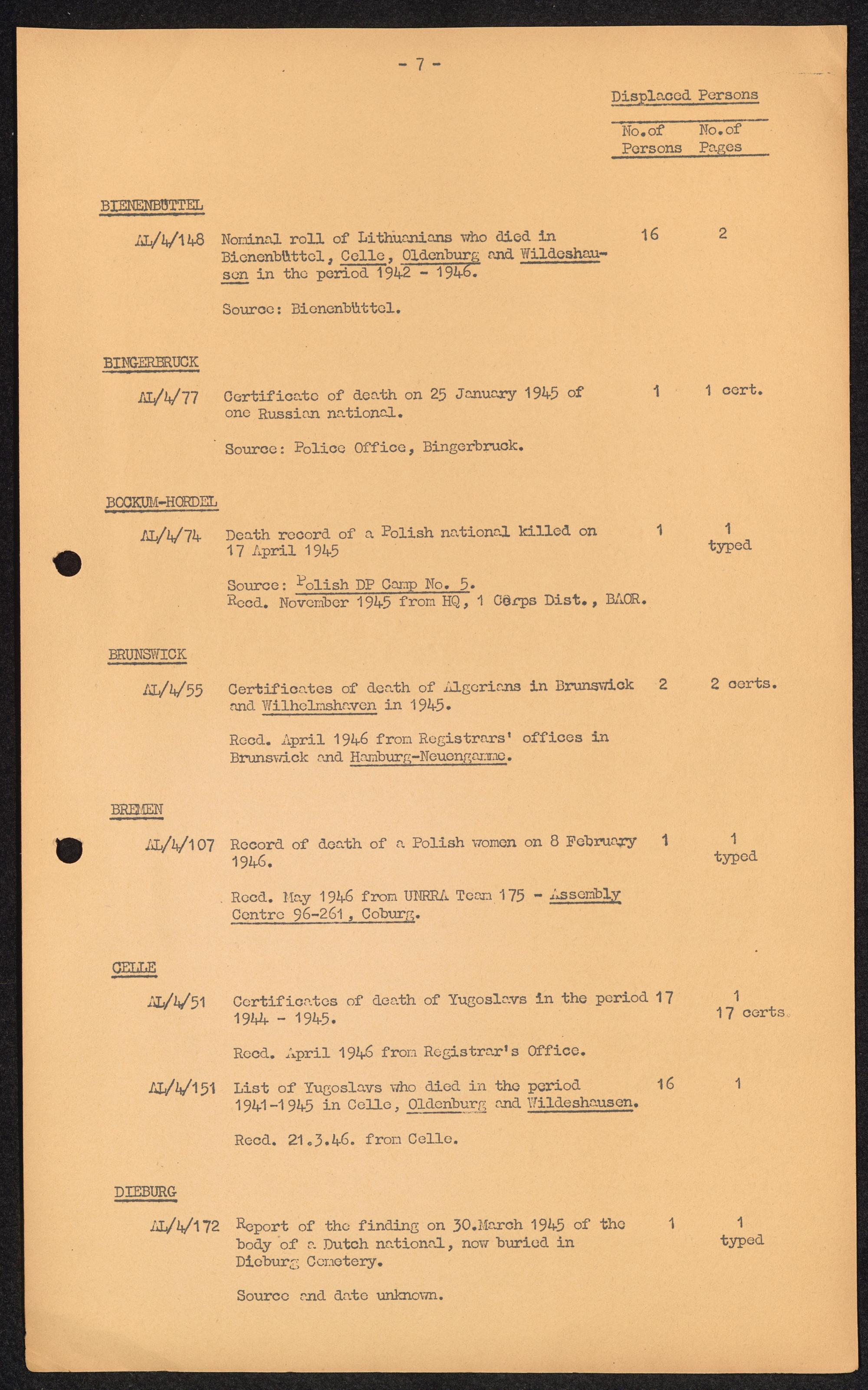 Accession List of Record and Documents Displaced Persons