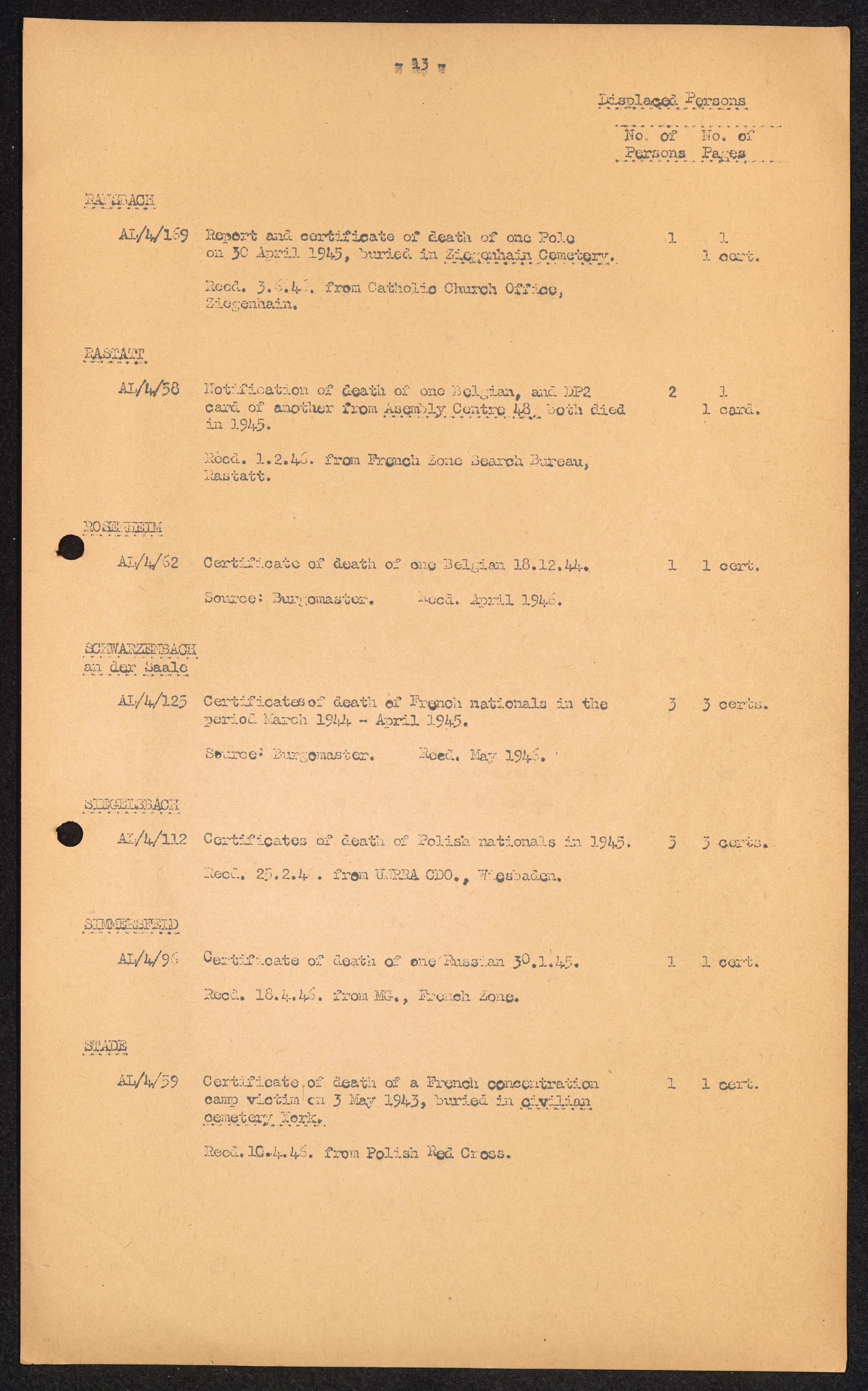 Accession List of Record and Documents Displaced Persons