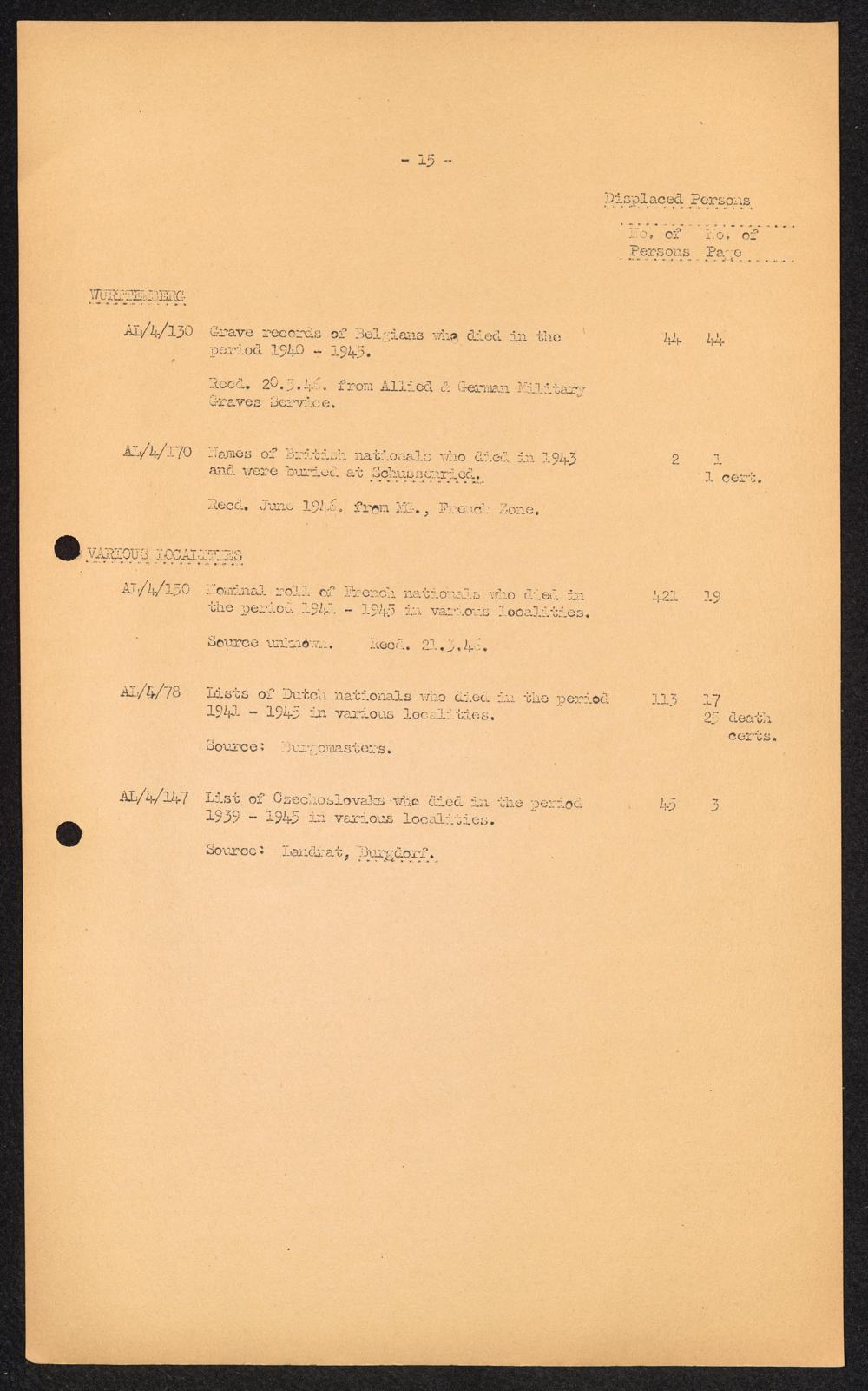 Accession List of Record and Documents Displaced Persons