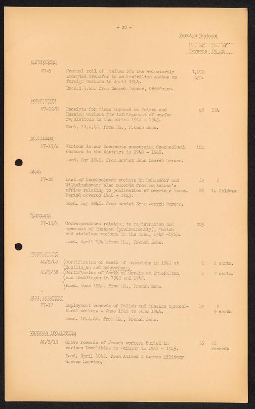 Accession List of Record and Documents Foreign Workers