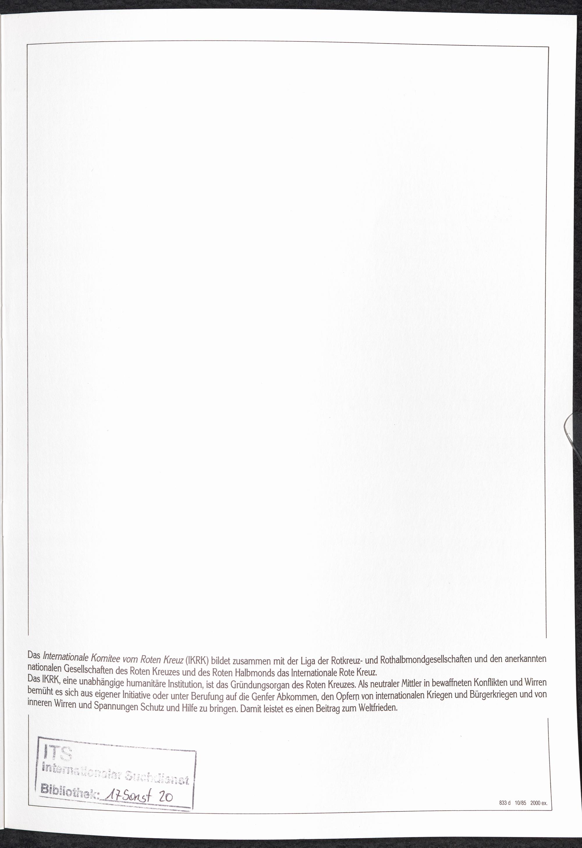 Der Zentrale Suchdienst des IKRK Rückdeckel Innenseite