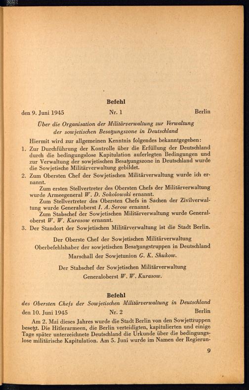 Befehle des Obersten Chefs der Sowjetischen Militärverwaltung in Deutschland / Aus... Befehle des Obersten Chefs der Sowjetischen Militärverwaltung in Deutschland und... Abschnitt I: Befehle des Obersten Chefs der Sowjetischen Militärverwaltung in Deutschland...