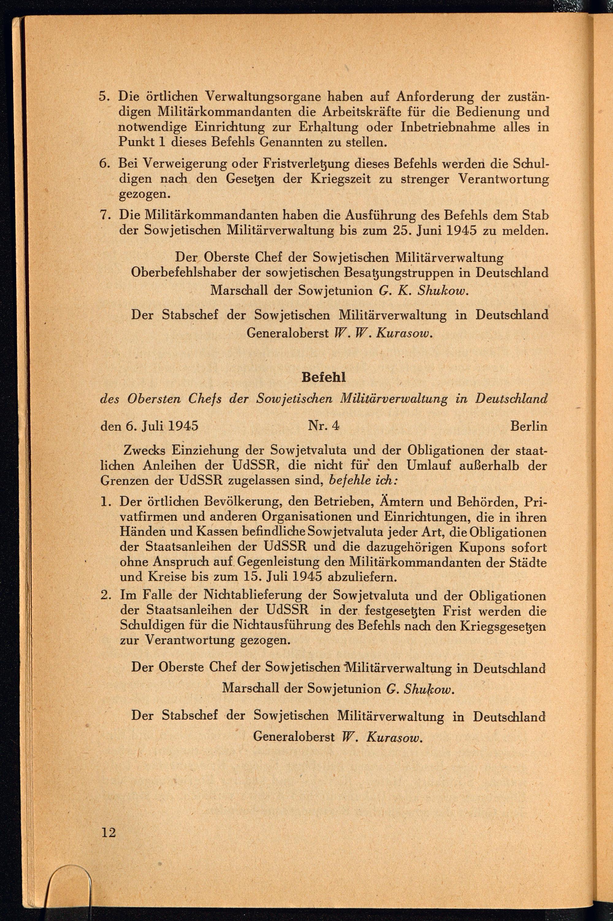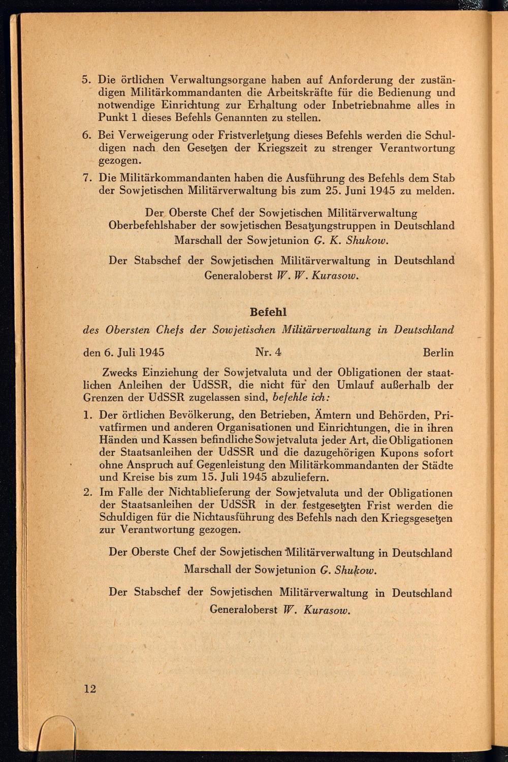 Befehle des Obersten Chefs der Sowjetischen Militärverwaltung in Deutschland und amtliche Bekanntmachungen des Stabes der Sowjetischen Militärverwaltung in Deutschland