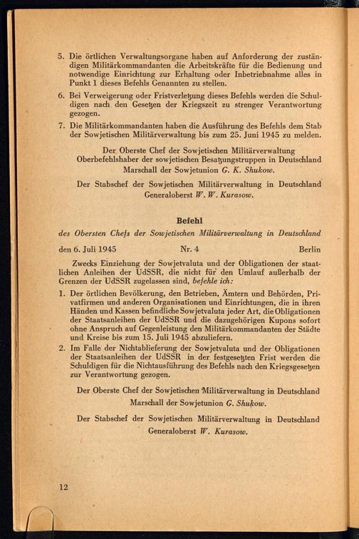 PDF Befehle des Obersten Chefs der Sowjetischen Militärverwaltung in Deutschland und amtliche Bekanntmachungen des Stabes der Sowjetischen Militärverwaltung in Deutschland