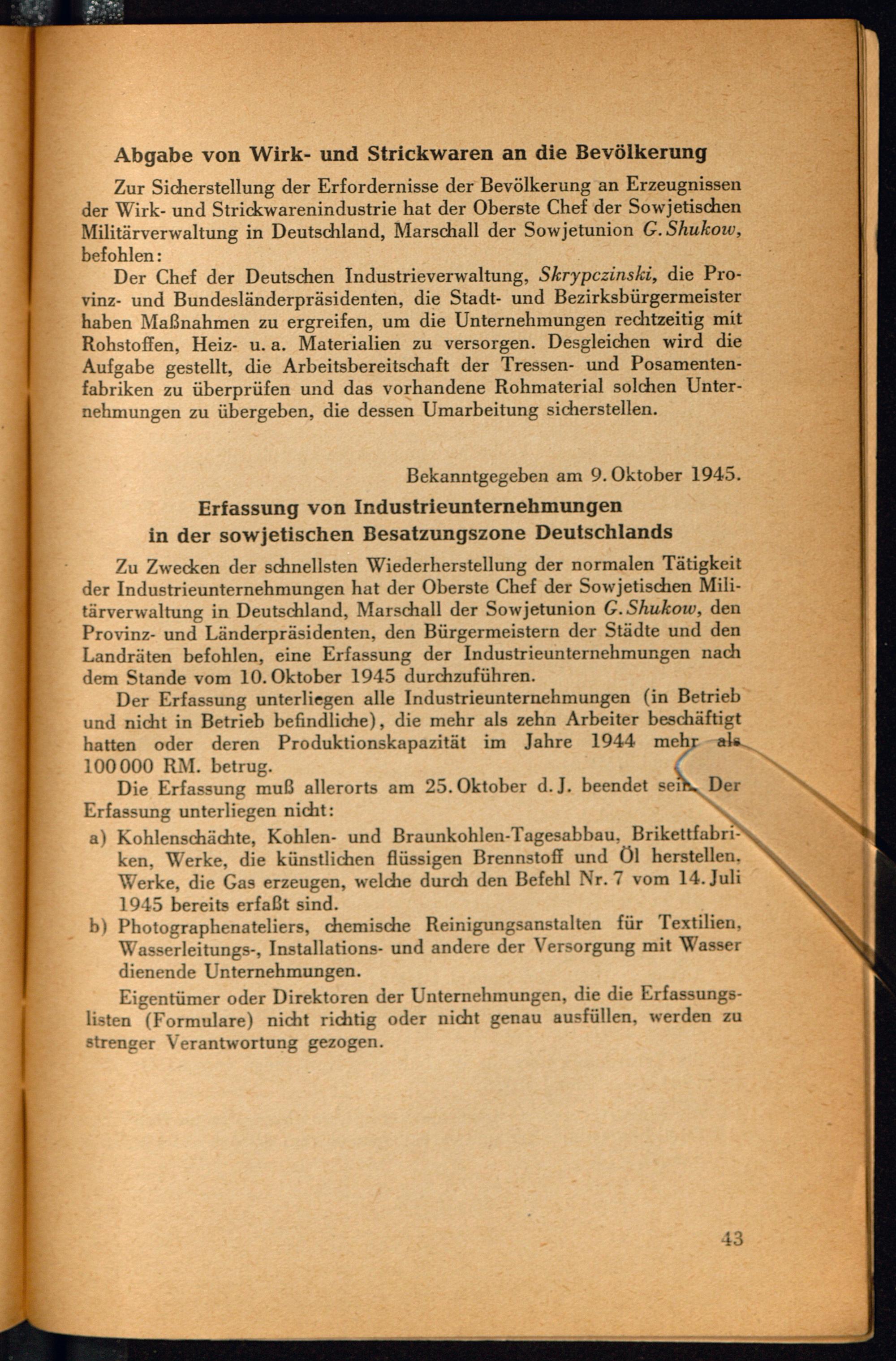 PDF  Abschnitt I: Befehle des Obersten Chefs der Sowjetischen Militärverwaltung in Deutschland - 1945