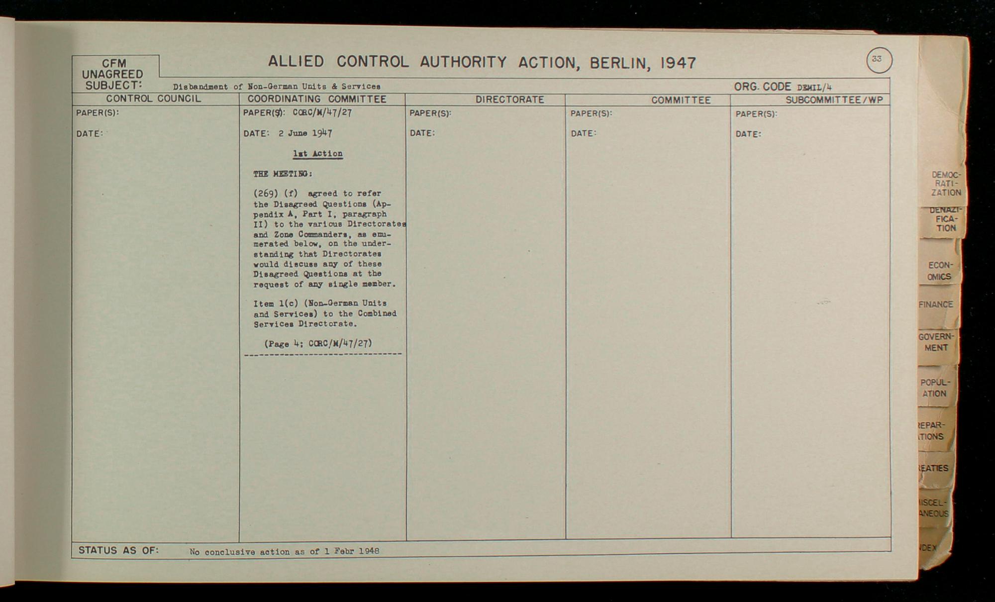 Summary of multipartite agreements and disagreements on Germany Part II: Demilitarization