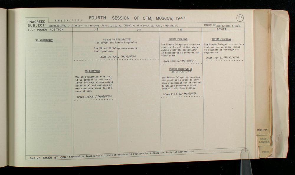 Summary of multipartite agreements and disagreements on Germany Part IX: Reparations