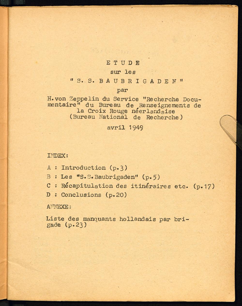 Etude sur les S.S. Baubrigaden Titelseite und Inhaltsverzeichnis