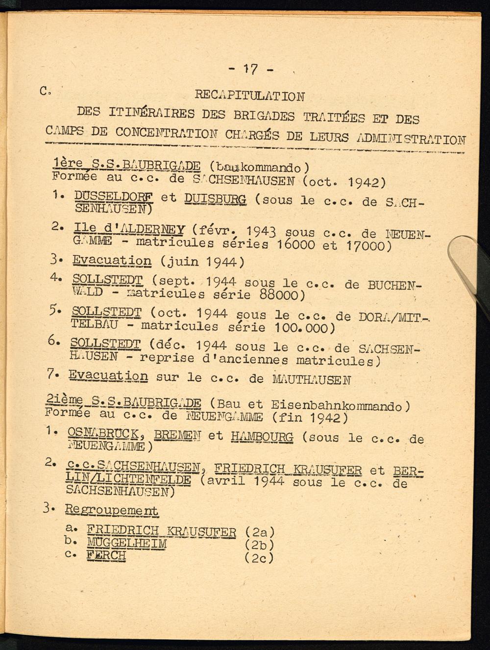 PDF 17 C. Récapitulation des itinéraires des Brigades Traitées et des Camps de Concentration chargés de leurs Administration