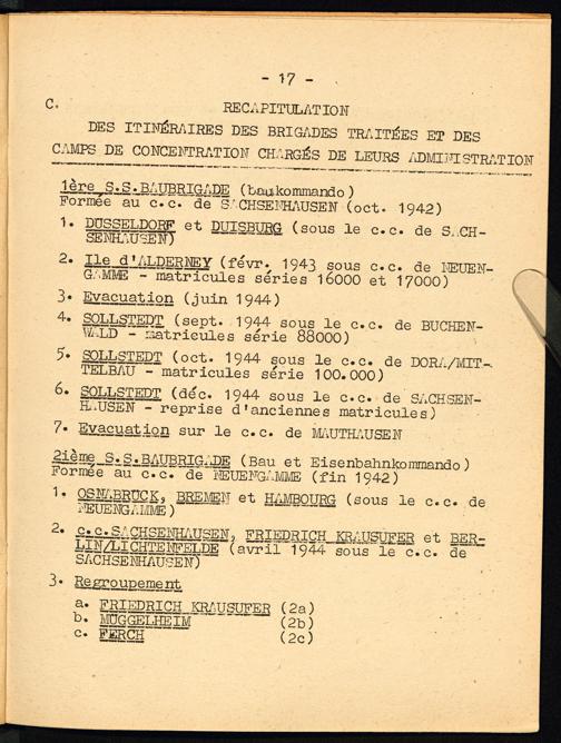 Etude sur les S.S. Baubrigaden C. Récapitulation des itinéraires des Brigades Traitées et des Camps de Concentration...