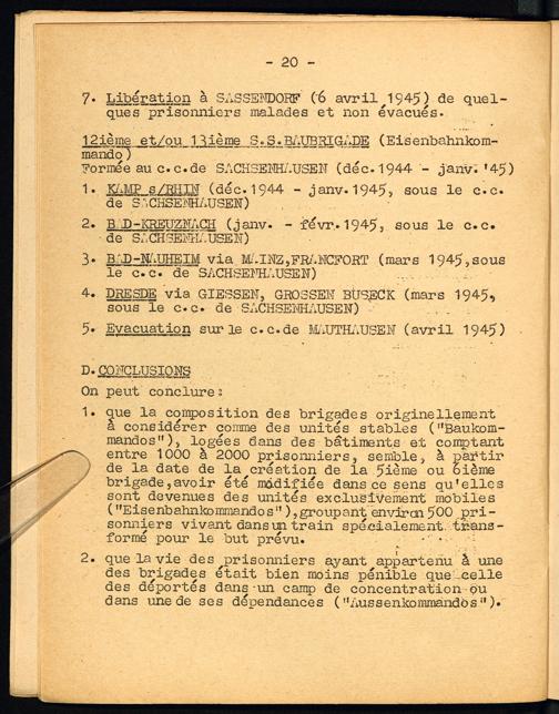 Etude sur les S.S. Baubrigaden C. Récapitulation des itinéraires des Brigades Traitées et des Camps de Concentration...