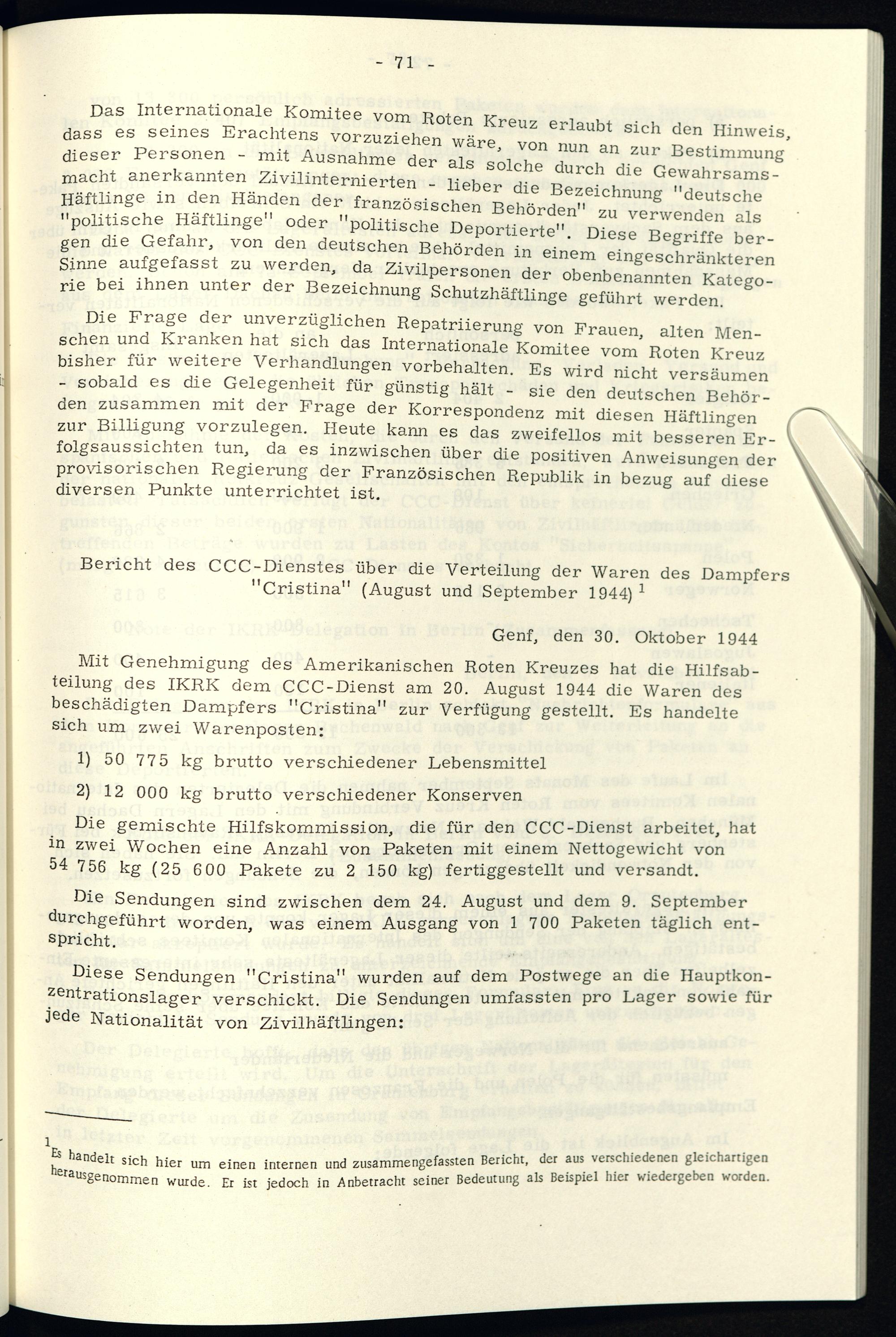 Die Tätigkeit des IKRK zugunsten der in den deutschen Konzentrationslagern inhaftierten Zivilpersonen (1939-1945) / Internationales Komitee vom Roten Kreuzes (IKRK)