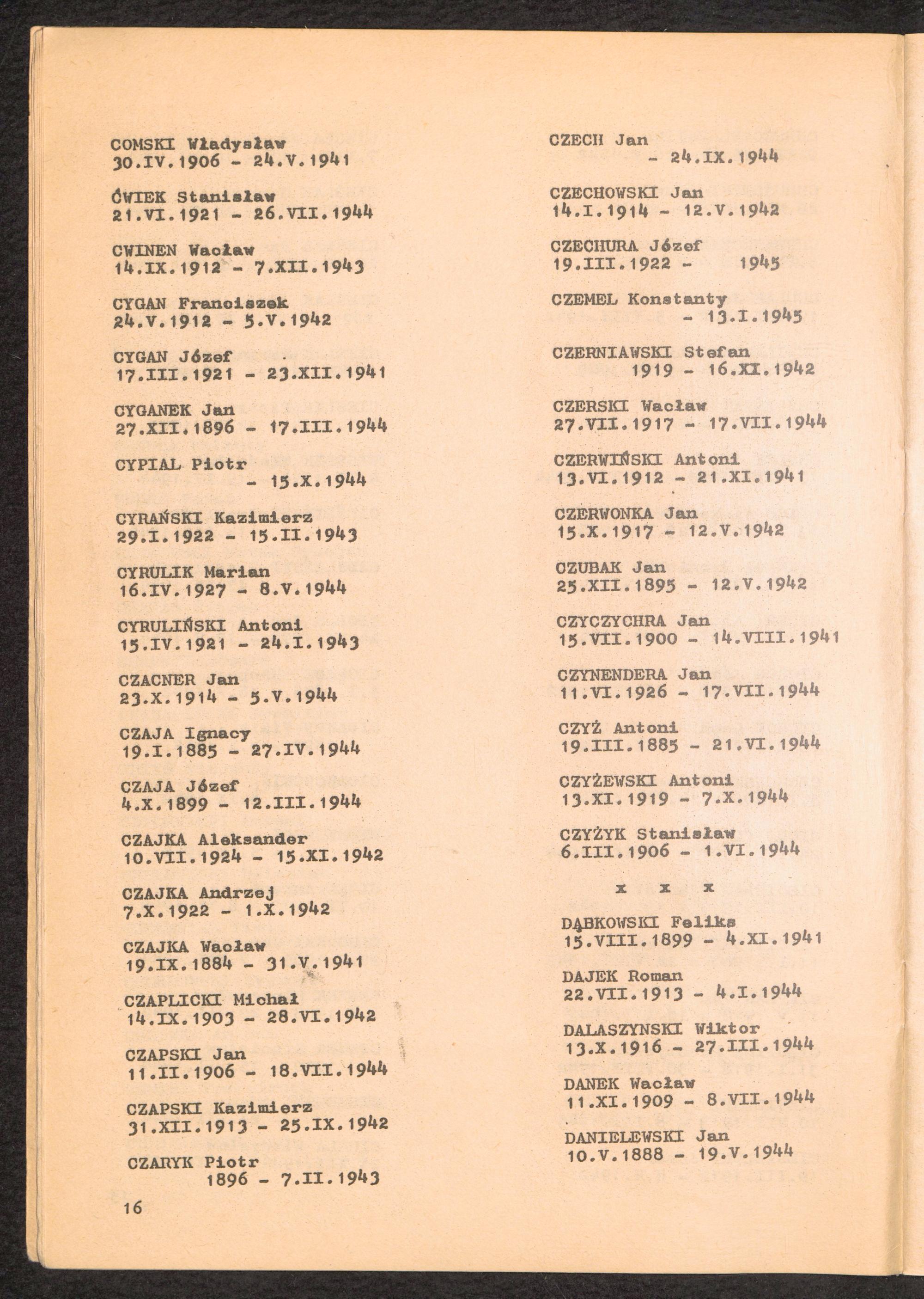 1981: Przezylismy Gross Rosen Tom III, Ksiega pomordowanych, Zeszyt 1 : Wykaz pomordowanych ze zbiorow Romana Olszyny