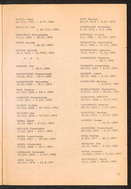 1981: Przezylismy Gross Rosen Tom III, Ksiega pomordowanych, Zeszyt 1 : Wykaz pomordowanych ze zbiorow Romana Olszyny