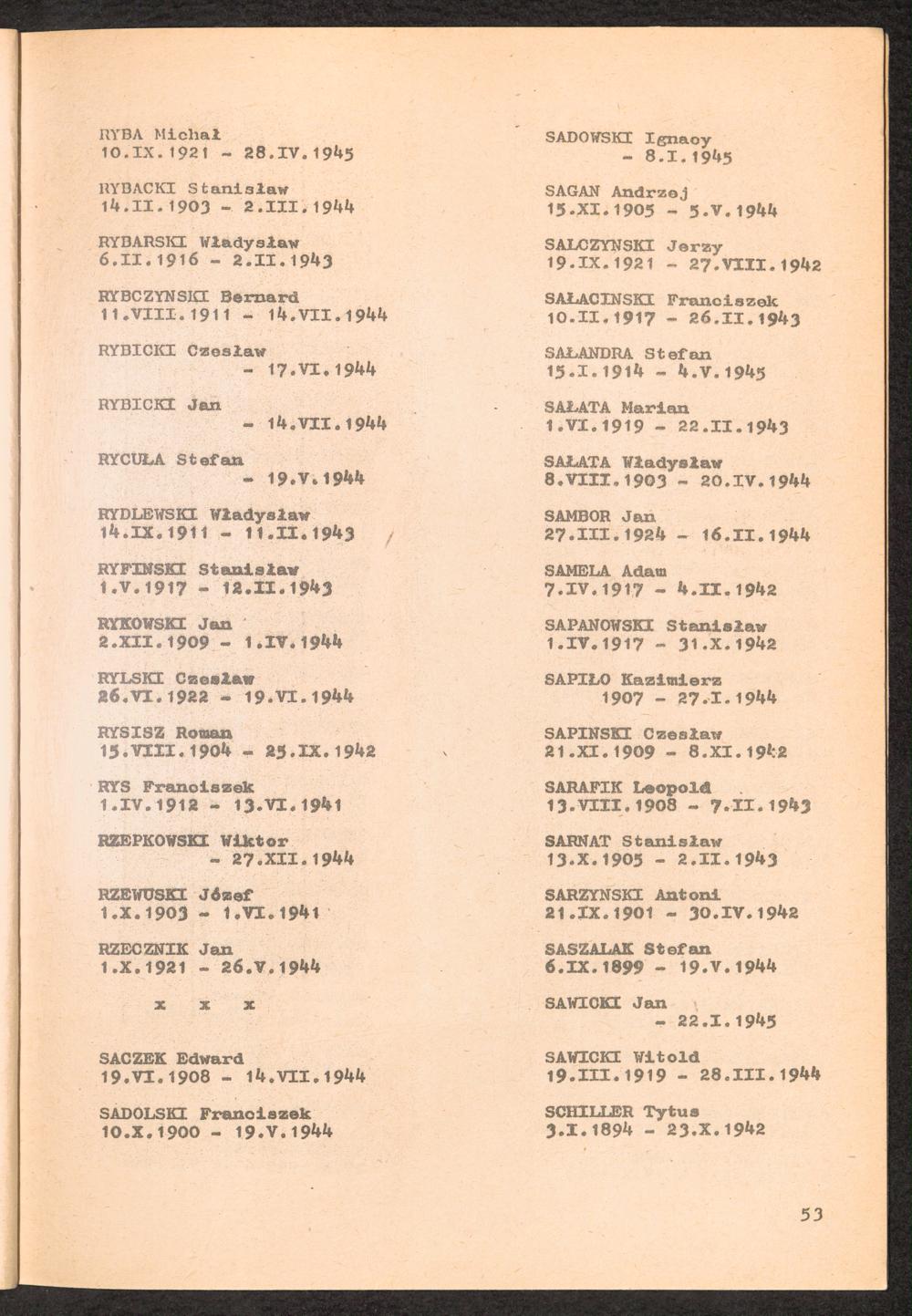 1981: Przezylismy Gross Rosen Tom III, Ksiega pomordowanych, Zeszyt 1 : Wykaz pomordowanych ze zbiorow Romana Olszyny