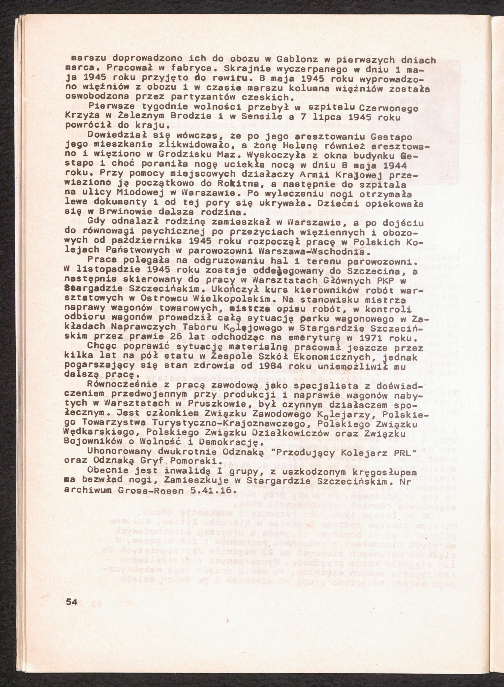 1986: Przezylismy Gross Rosen Tom IV, Biografie wieczniow, Zeszyt 4