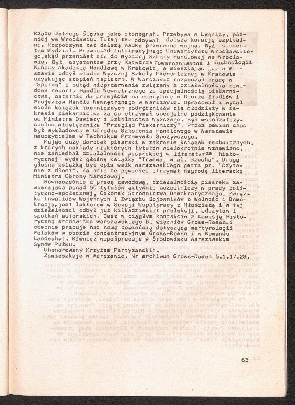 1986: Przezylismy Gross Rosen Tom IV, Biografie wieczniow, Zeszyt 5